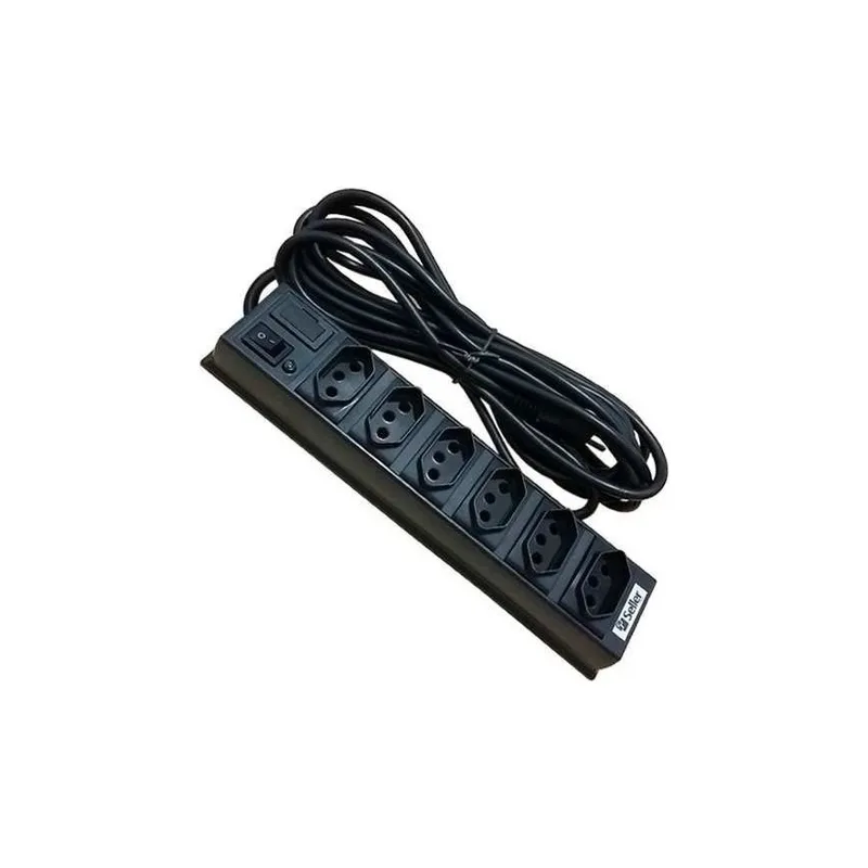 O Filtro de Linha Seller possui 6 tomadas e cabo de 1 metro, sendo ideal para alimentar e proteger equipamentos eletrônicos no dia a dia.