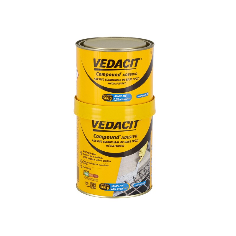 O Compound Vedacit é um adesivo estrutural impermeabilizante bicomponente, na cor cinza, indicado para a fixação, ancoragem e reparos estruturais em concreto, argamassa, alvenaria, cerâmica, pedras naturais e metais. Fornecido em embalagem de 1kg, garante alta resistência mecânica, durabilidade e impermeabilização das superfícies tratadas.