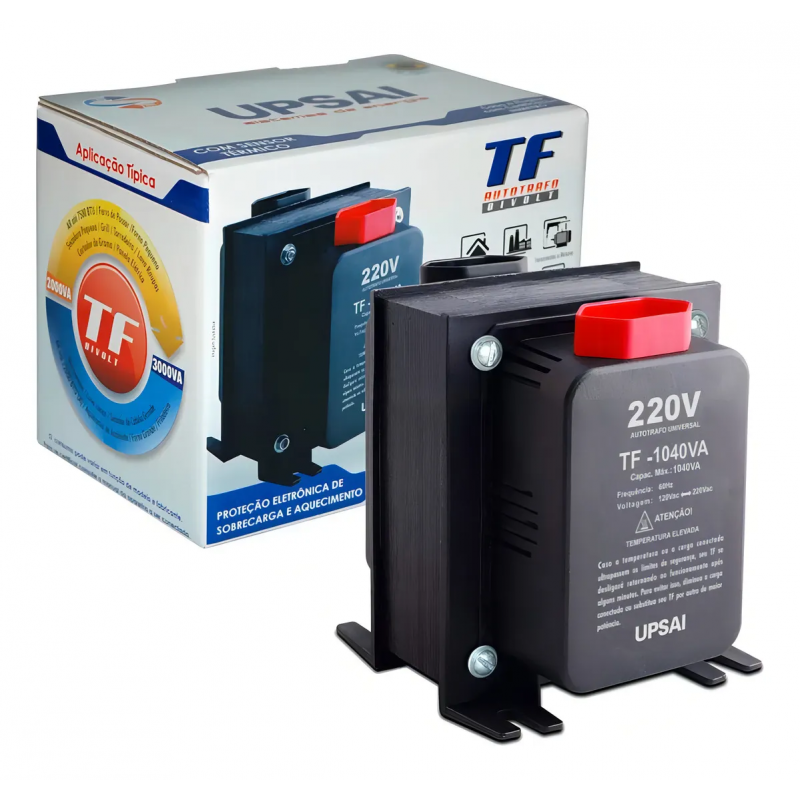 O Auto Transformador Upsai TF 1040VA é indicado para converter a tensão elétrica de 110V para 220V ou de 220V para 110V, proporcionando segurança e praticidade no uso de eletroeletrônicos.